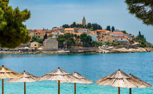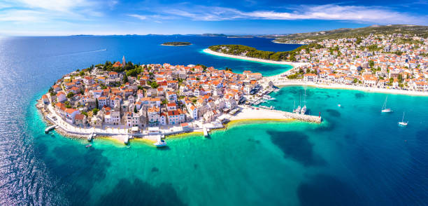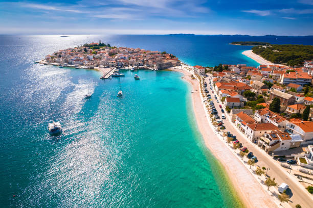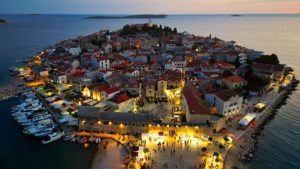 Primošten – to mała urocza miejscowość położona na półwyspie w połowie drogi między Šibernikiem, a Trogirem. Niewielkie wymiary Primoštenu sprawiają, że bez problemu możemy spokojnie obejść i zwiedzić całe miasteczko w godzinę. Opadające, wąskie uliczki, małe kafejki, stragany z pamiątkami i najważniejsze miejsce: kościół św. Jerzego położony na szczycie półwyspu skąd roztacza się niesamowity widok na okolicę. Idealne miejsce do wieczornych spacerów i wyciszenia wśród pięknej przyrody. Miasteczko otoczone jest szerokimi plażami z łagodnym zejściem do morza. W samym środku półwyspu, na dużym zielonym terenie, w odległości kilkunastu metrów od plaży znajduje się hotel Jest to dość duży kompleks składający się z kilku pawilonów, położonych wśród sosnowego lasu i przyrody na wyciągnięcie ręki. Plaże szerokie i czyste z niesamowitym widokiem na starówkę