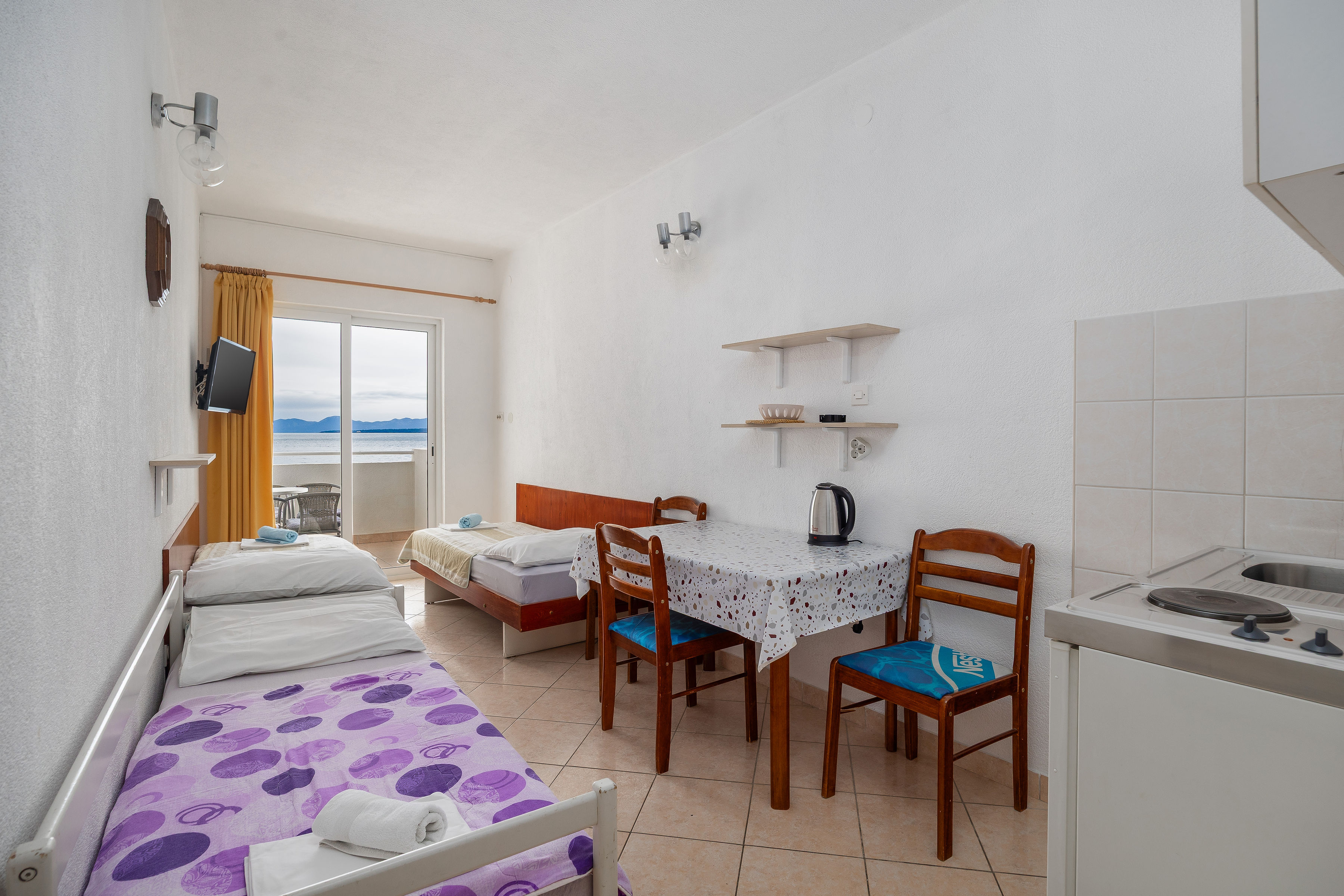 UZ MORE, czyli przy morzu. Jak sama nazwa wskazuje, apartamenty te położone są, tuż przy morzu i plaży (5 m) i posiadają fantastyczne widoki na morze, wyspę Hvar oraz całą miejscowość. Każde miejsce, do którego chciałoby się pójść, czy to sklep, plaża czy też promenada, są dosłownie na wyciągnięcie ręki. Każdy z apartamentów posiada 2 lub 3 miejsca do spania, bardzo dobrze wyposażony aneks kuchenny, łazienkę oraz balkon. W apartamencie znajduje się również TV, jest dostęp do internetu oraz klimatyzacja. Można spędzać wieczory, siedząc na balkonie, wsłuchując się w szum fal i wypatrując delfinów (apartamenty wyposażone są w lornetki !). Klienci, którzy spędzali urlop w apartamentach UZ MORE bardzo chwalili czystość, piękne widoki oraz uprzejmość właściciela obiektu.